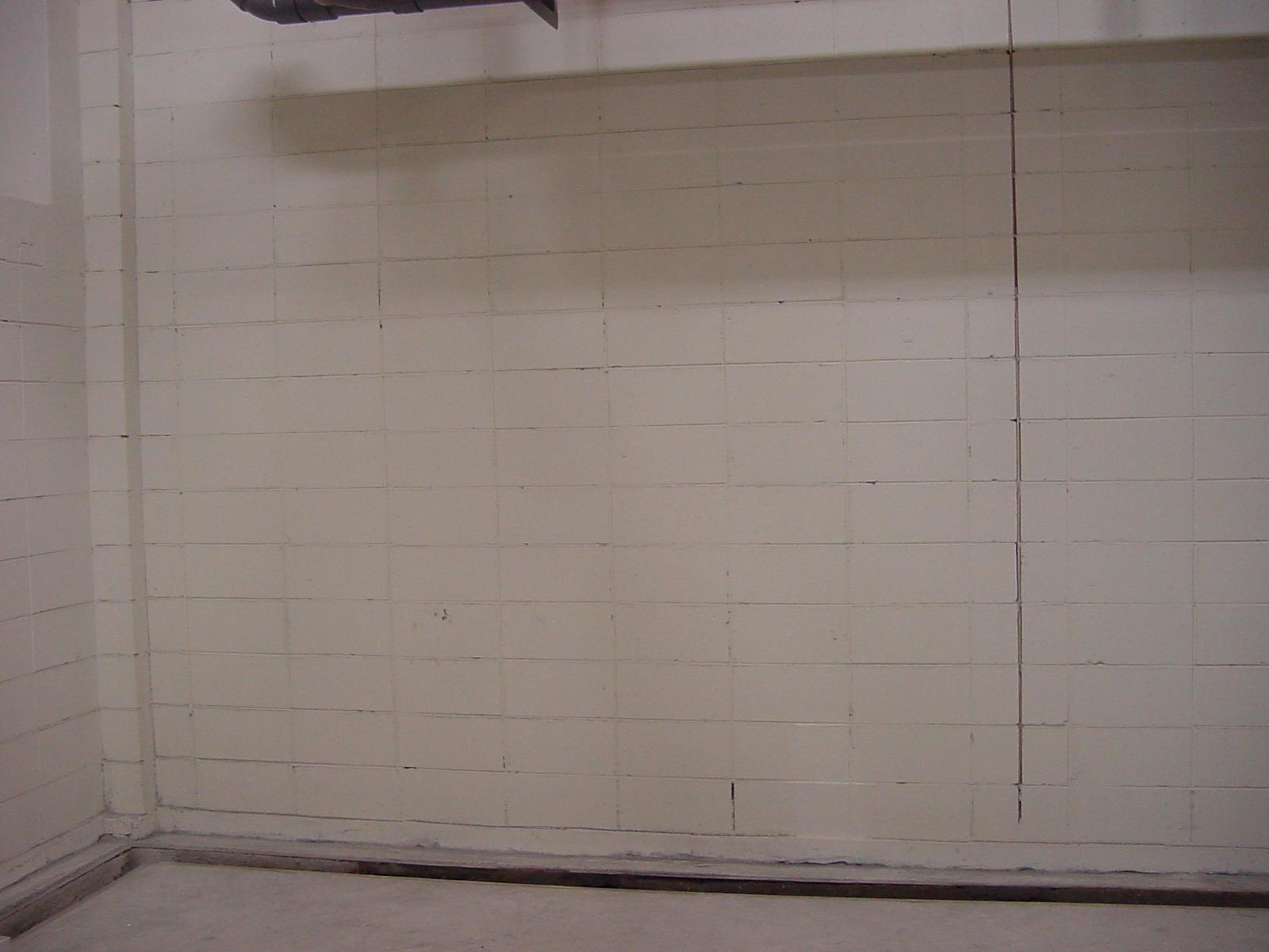 블록쌓기가 가장 많이 활용되는 경우는 아마 지하실 방습벽(혹은 결로방지벽)일 것입니다. 아래 사진에서 볼 수 있는 것처럼 콘크리트는 이어치기 한 부분으로 물이 쉽게 누수됩니다.