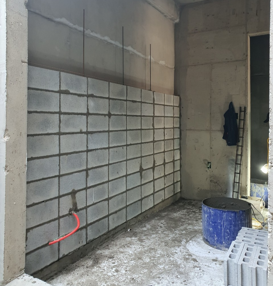 보강 블록은 아래 사진처럼 철근과 콘크리트로 보강하는 방식입니다.