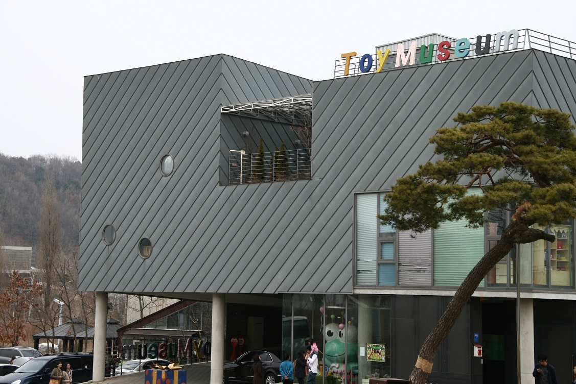 최근에는 징크 패널이 많이 사용되고 있는 것 같습니다. 징크(Zinc) 패널은 순도 99% 이상의 아연에 소량의 티타늄과 구리를 합금한 것인데, 표면에 산화보호층이 형성되면서 내구성이나 내마모성이 뛰어난 특성이 있습니다. 산화 처리 방식으로 청회색(Blue-grey) 을 띠는데, 티타늄이나 알루미늄으로 특수 처리한 판재도 있습니다.