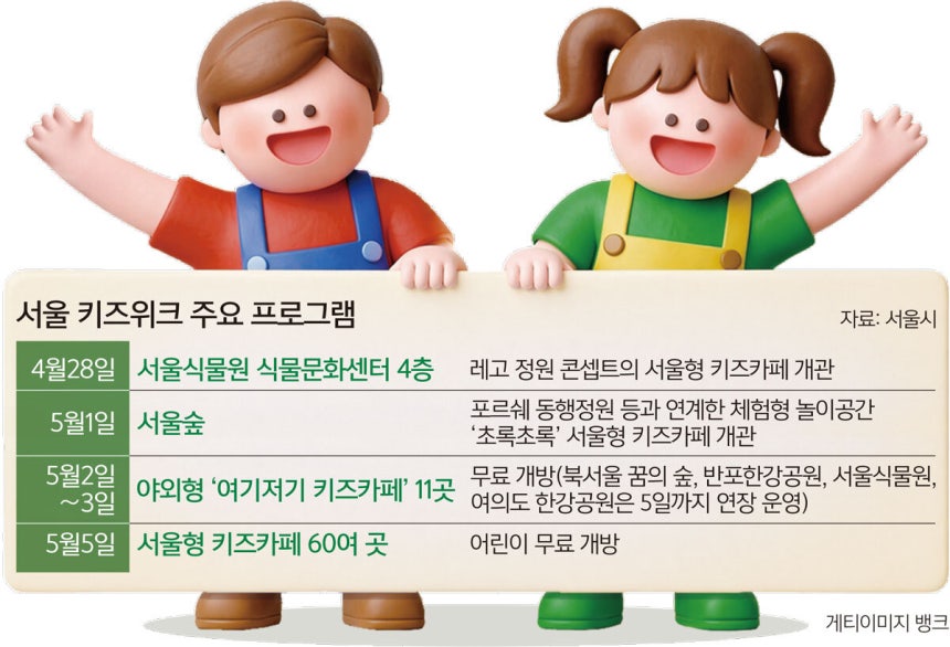 어린이날 당일인 5일에는 관련 조례 등에 따라 서울형 키즈카페 60여곳을 무료 개방한다. 시는 시민 555명을 추첨해 ‘서울형 키즈카페 무료 이용권’을 증정하는 이벤트도 연다.