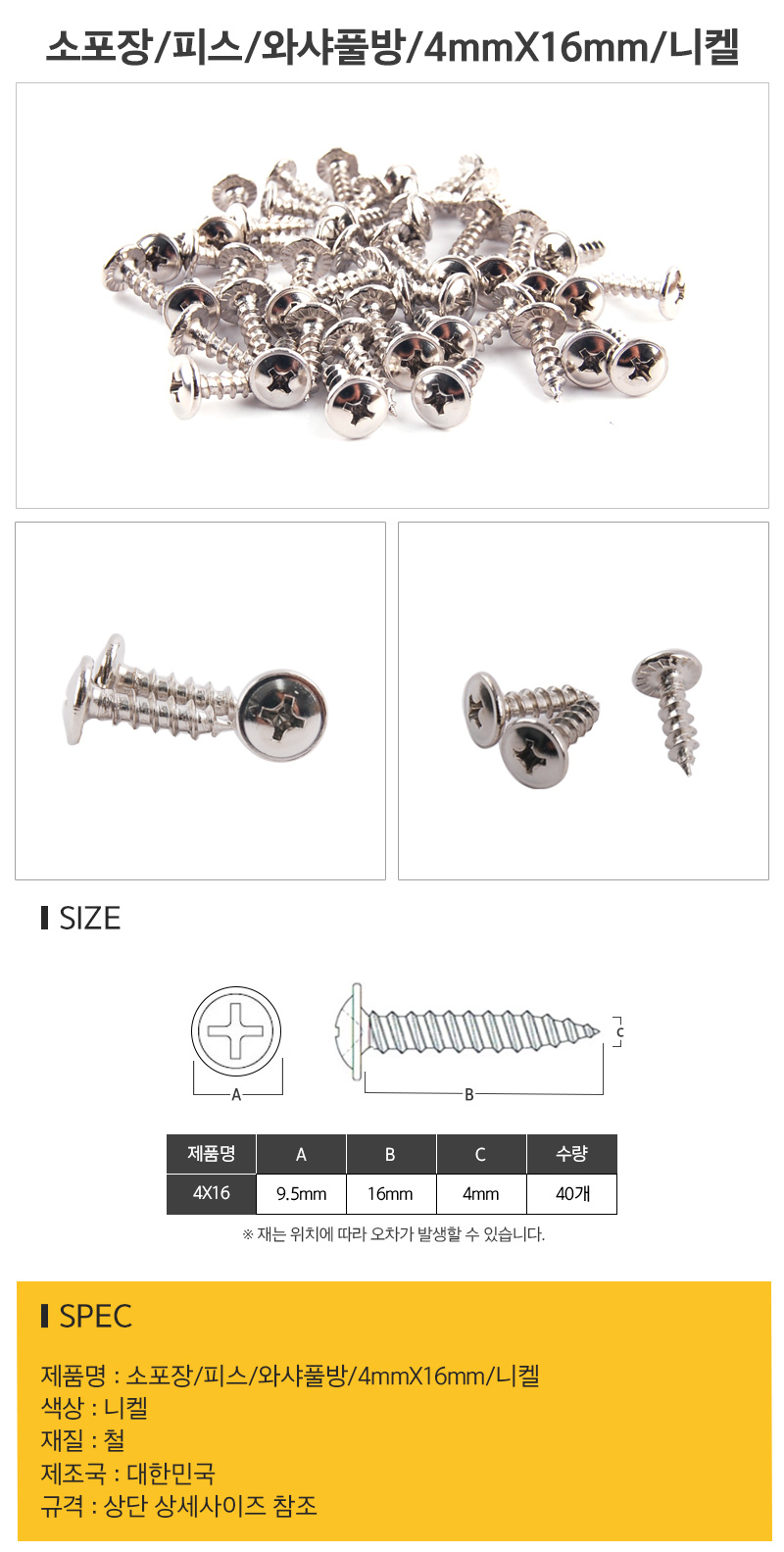 가구 싱크피스 와샤풀방 4x16mm 니켈 (40개입)