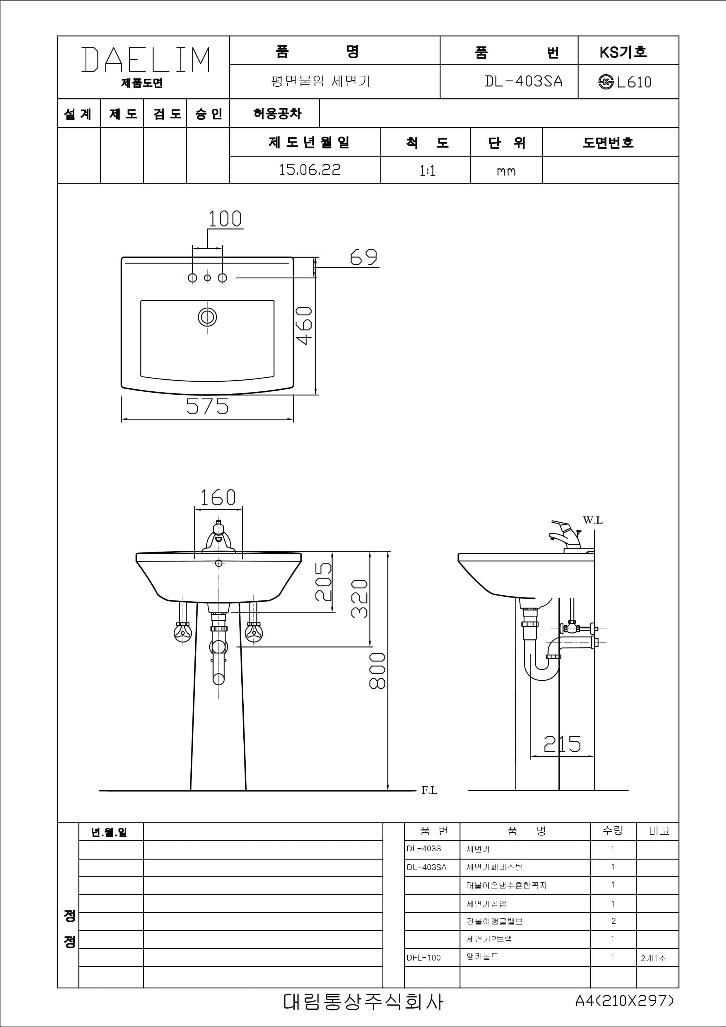 도비도스 긴다리 평면 붙임 세면기 DL-403