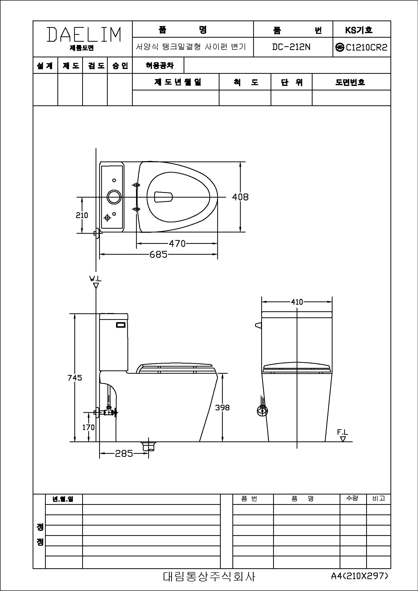 도비도스 치마형 하이탱크 원피스 양변기 DC-601
