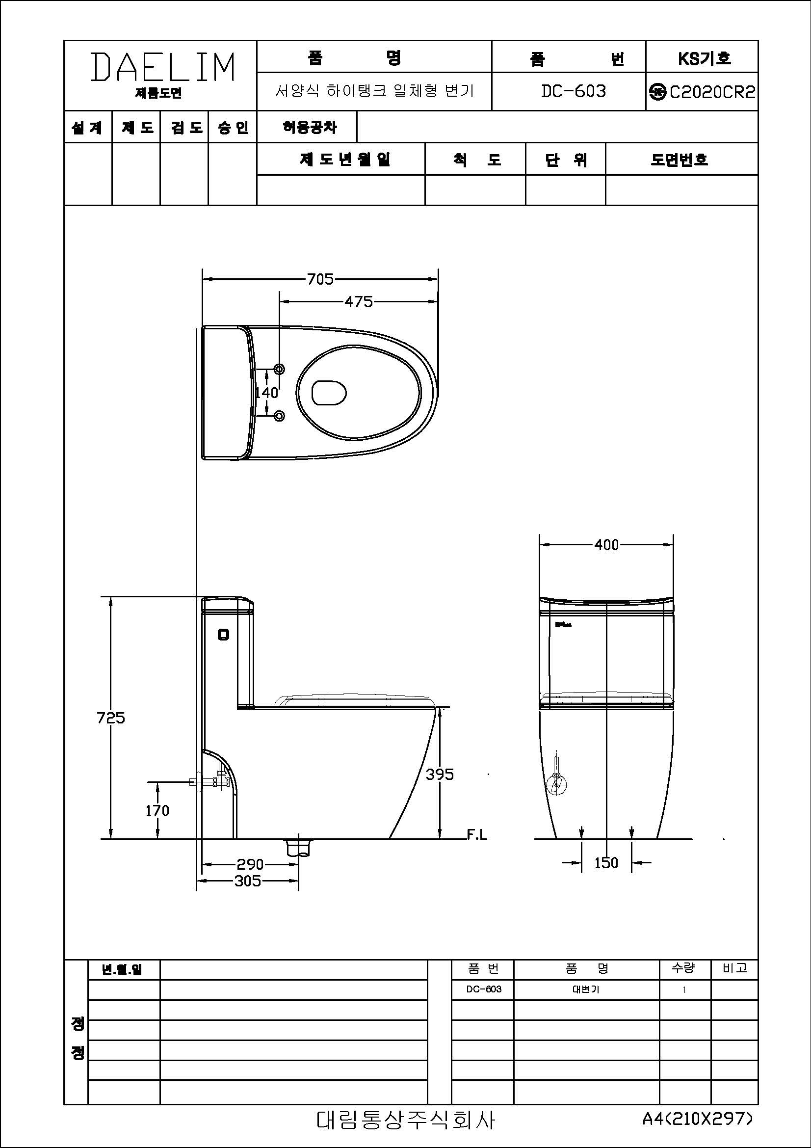 도비도스 치마형 하이탱크 원피스 양변기 DC-603