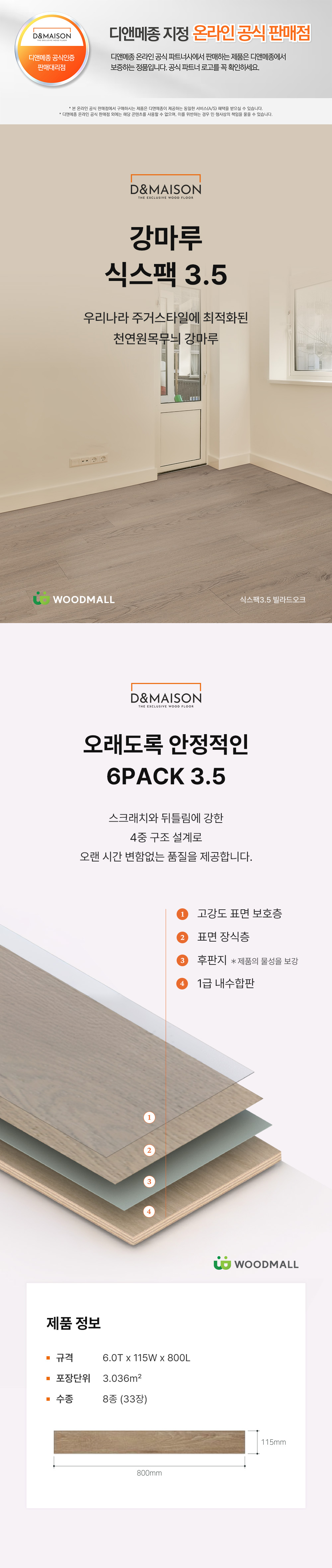 디앤메종 강마루 식스팩3.5 (3.036m2) 6Tx115x800