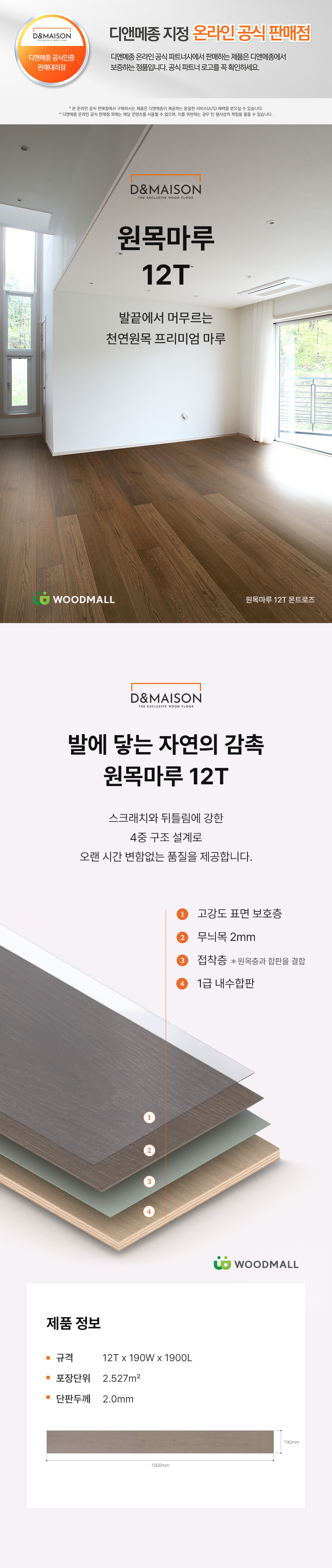 디앤메종 원목마루 12T (2.527m2) 12Tx190x1900