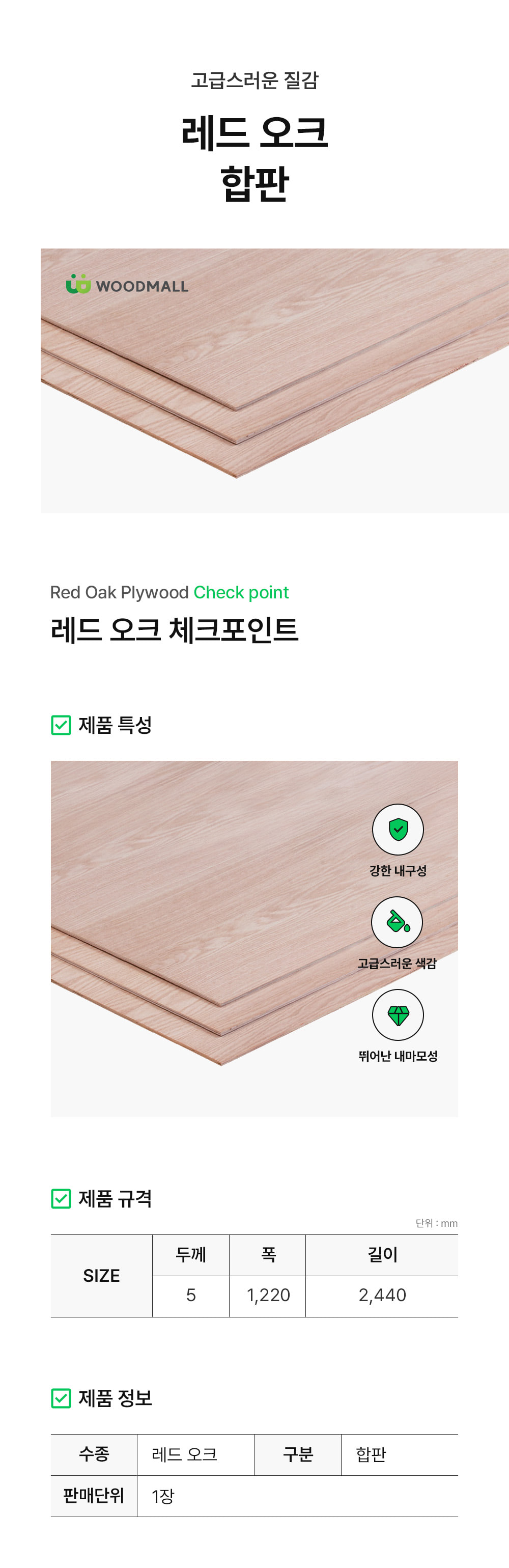 레드오크 합판 (5Tx1220x2440)