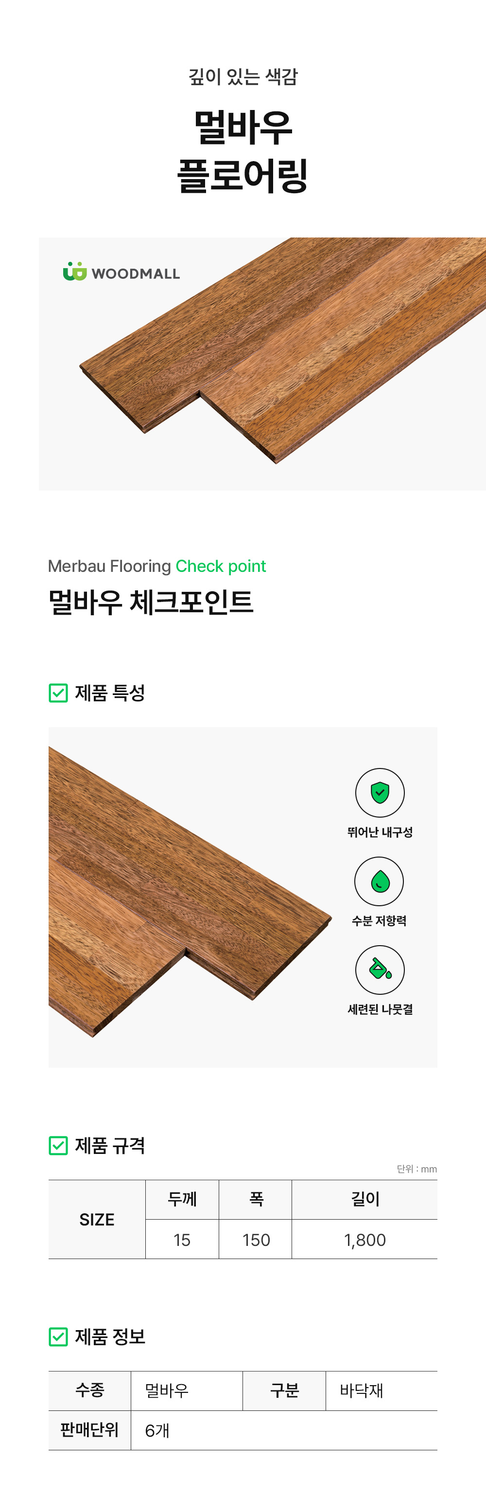 멀바우 플로어링 (6개묶음) 15x150x1800