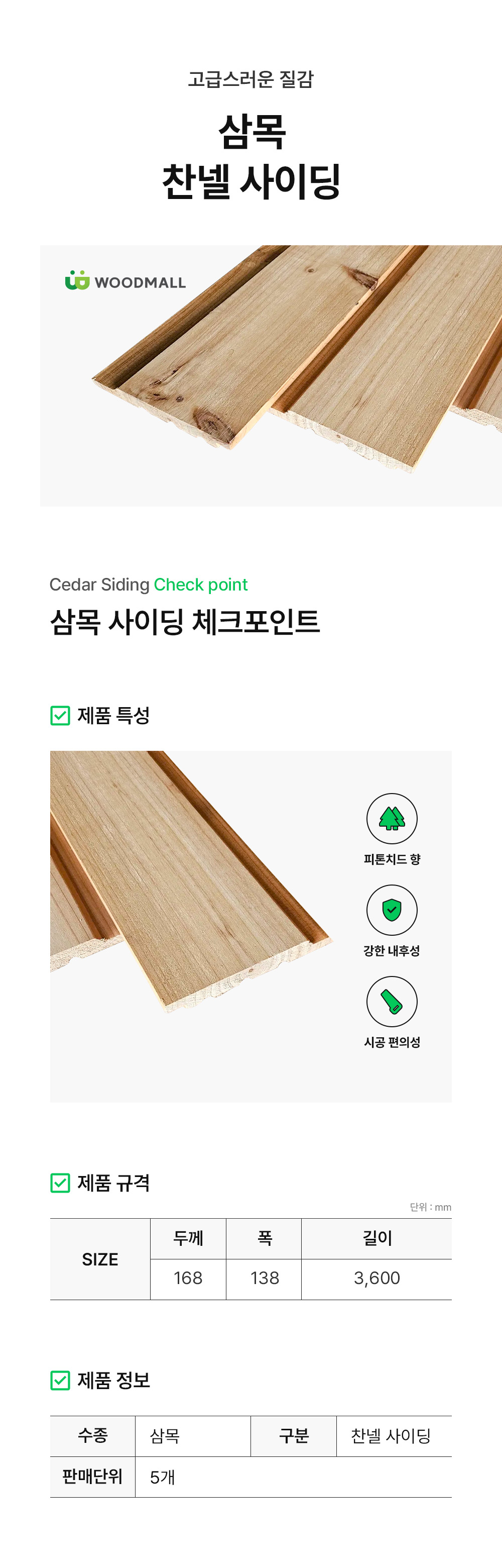 삼목 찬넬 사이딩 (5개묶음) 16x138x3600