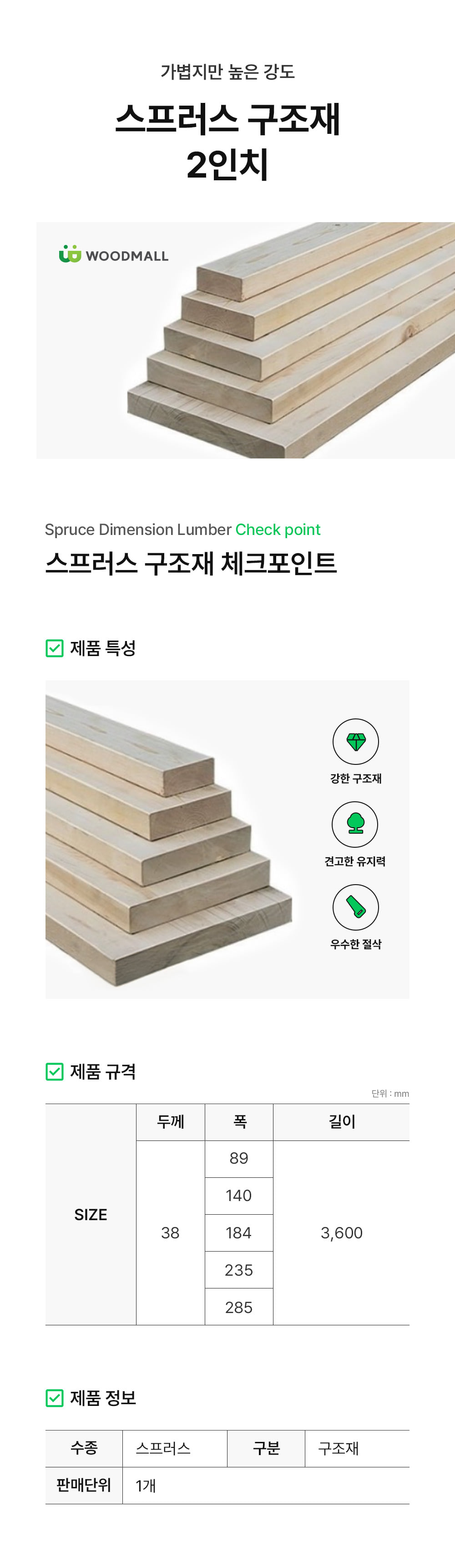 스프러스 2인치 구조재
