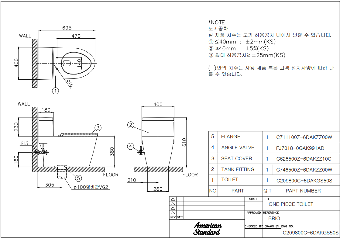 아메리칸 스탠다드 BRIO 브리오 원피스 양변기