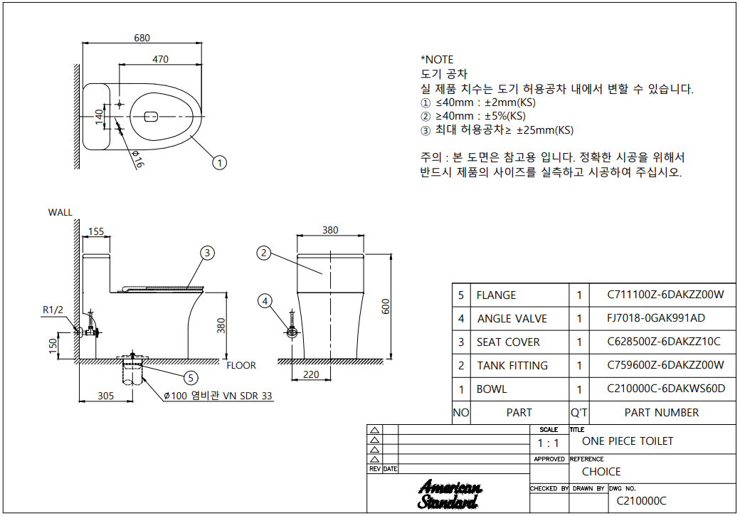 아메리칸 스탠다드 CHOICE 초이스 원피스 양변기