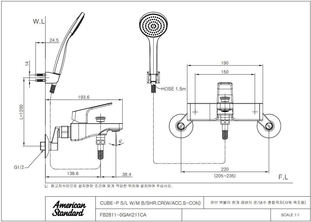 아메리칸 스탠다드 CUBE-P 큐브 P 샤워욕조 수전