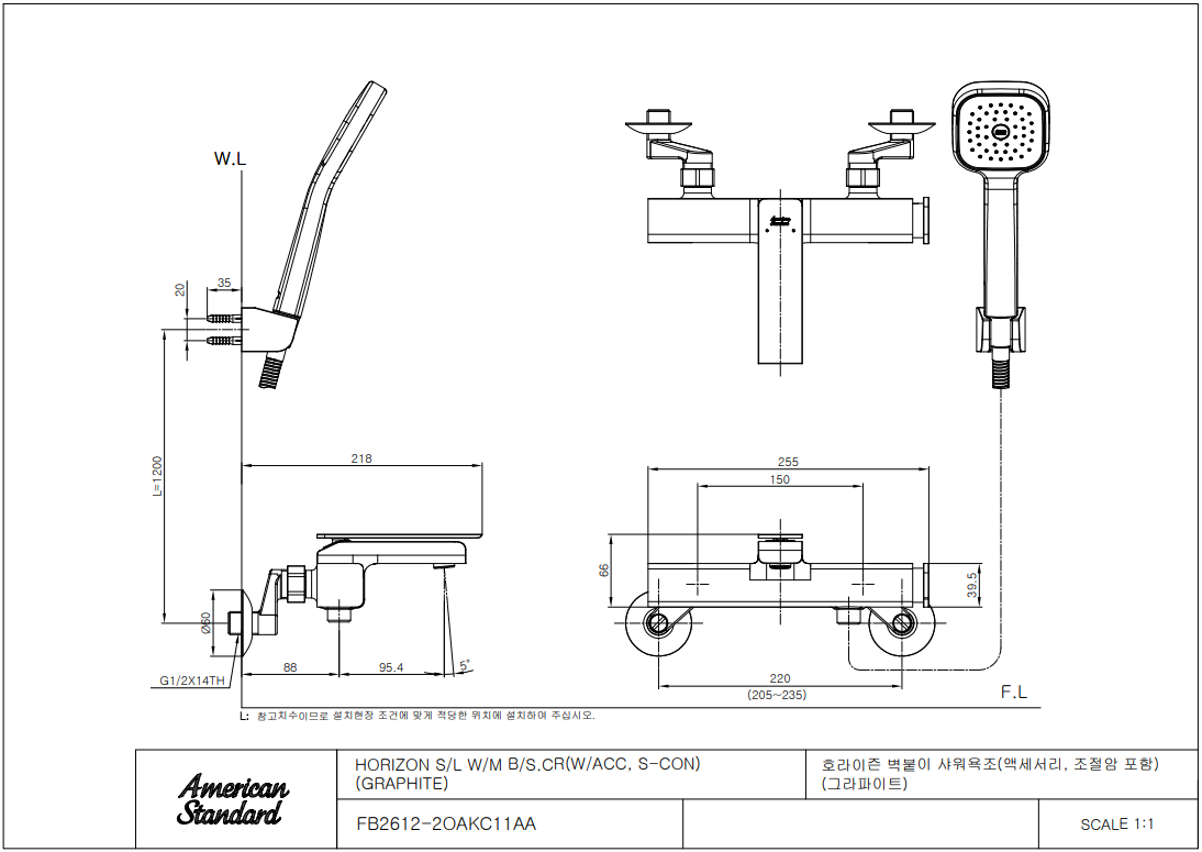 아메리칸 스탠다드 HORIZON 호라이즌 샤워욕조 수전 (그라파이트)