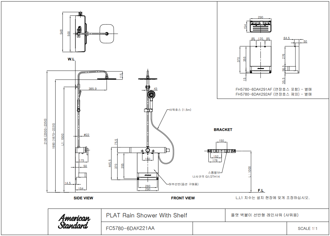 아메리칸 스탠다드 PLAT 플랫 선반형 레인샤워 (하부선반)