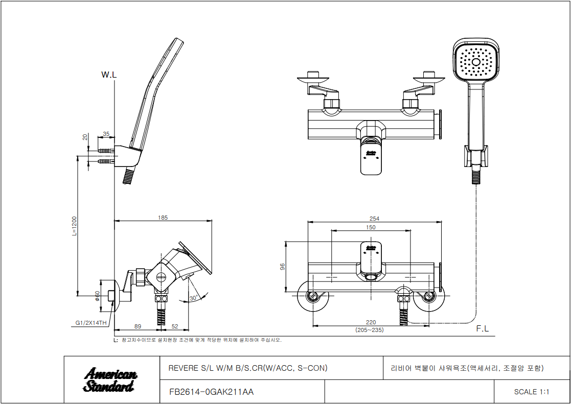아메리칸 스탠다드 REVERE 리비어 샤워욕조 수전