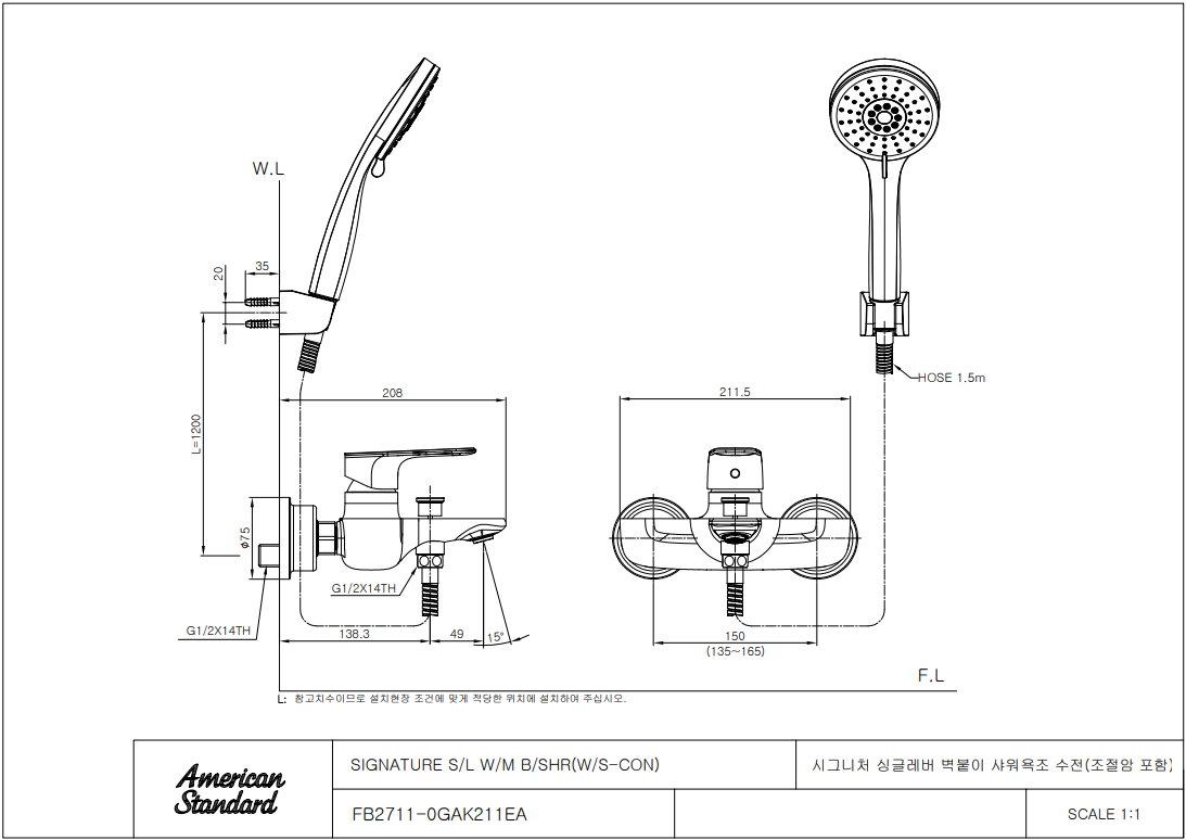 아메리칸 스탠다드 SIGNATURE 시그니처 샤워욕조 수전