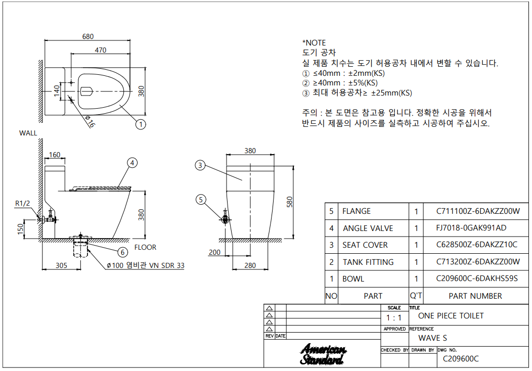 아메리칸 스탠다드 WAVE S 웨이브 S 원피스 양변기(로우탱크)
