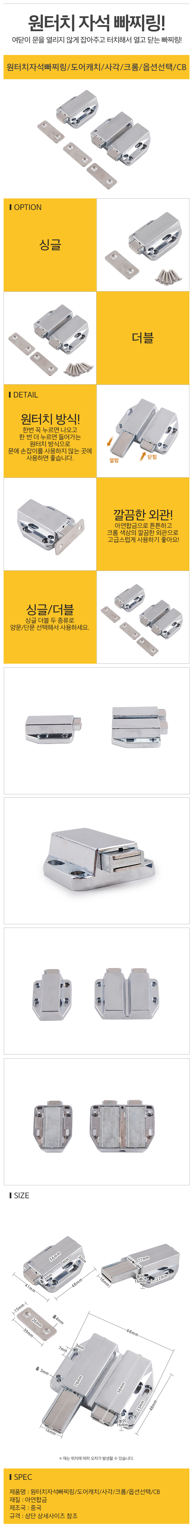 원터치 자석 빠찌링 도어캐치 사각 크롬 더블