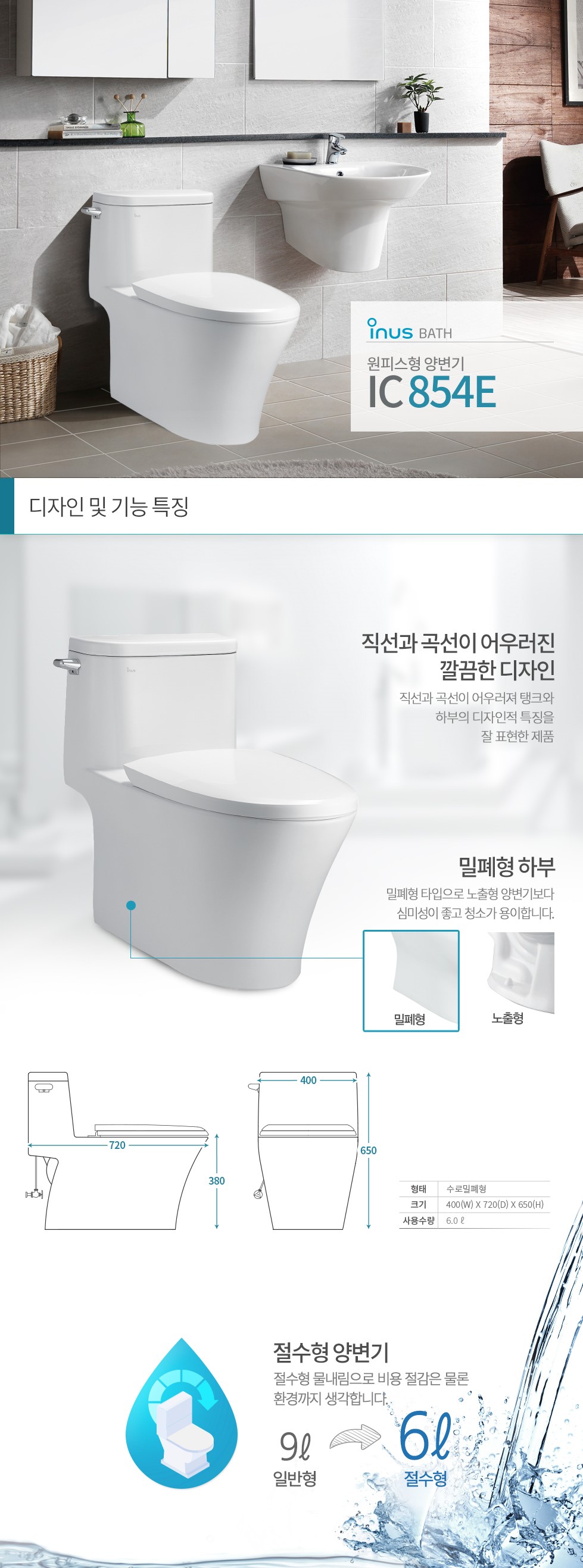 이누스 IC854E 절수형 원피스 양변기 (부속 및 시트포함)