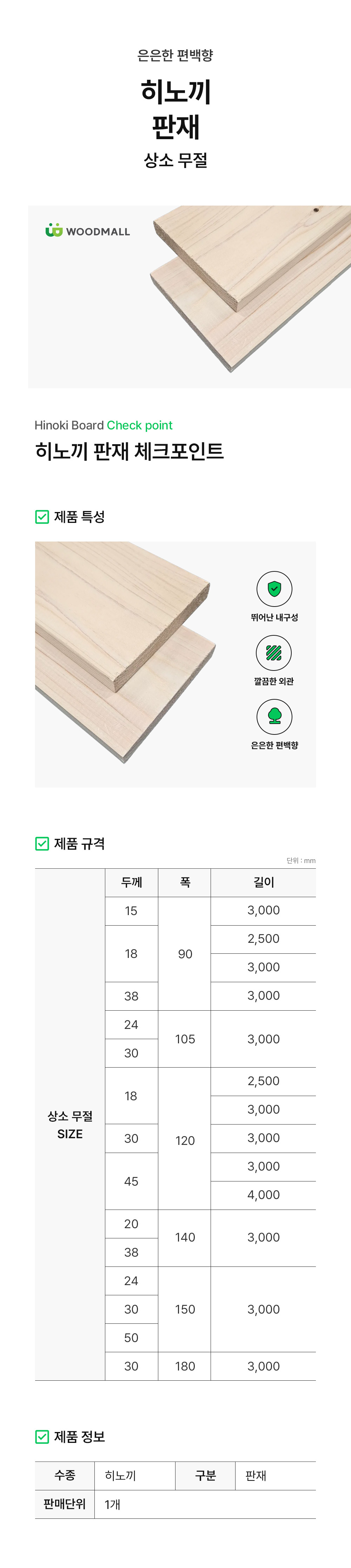 편백(히노끼) 판재 상소무절