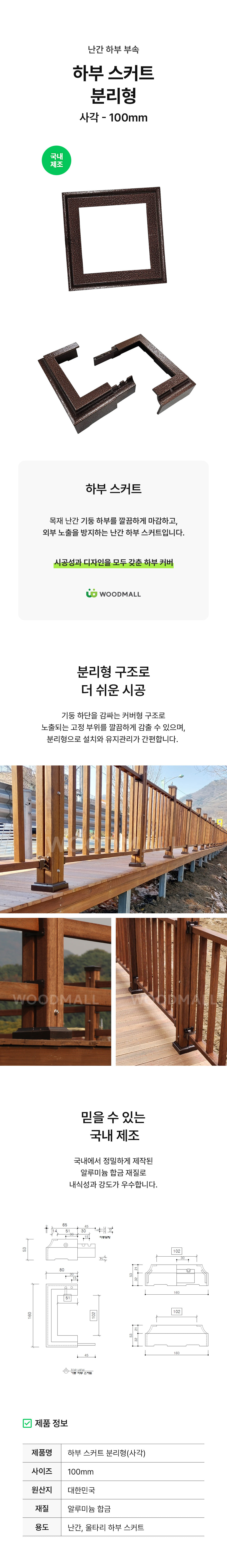 휀스난간 하부캡 스커트 분리형 사각 100각
